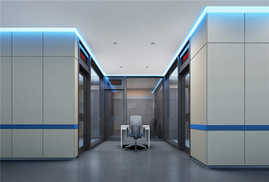 凱音審訊室防撞軟包是一種具備防撞、防火、阻燃、環(huán)保、隔音、吸音等多種功能為一體的功能性裝飾材料。表面飾面為防火布藝、防火皮革飾面或其他客戶所需定制飾面。其產(chǎn)品廣泛使用在電影院、會議室、紀(jì)委審訊室、審問室、辨認(rèn)室、談話室、醒酒室等墻面裝飾。